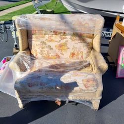 Vtg. 1930s Two-Seater Sofa + Chair Wood Legs Simplistic$80Garden City P, NY