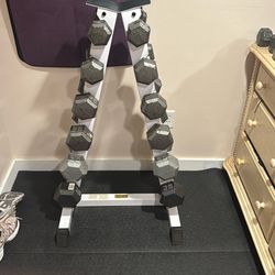 Complete Set Of Steel Hex Dumbbells From 5 Lbs To 55 Lbs With 2 Tier Powertec Dumbbell Rack$800Ronkonkoma, NY