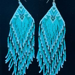 Blue Fringe Beaded Earrings $16Farmingville, NY