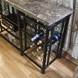 Granite black iron metal console table bar buffet server sideboard TV stand entertainment Center Display Shelves Glass Wine Bottle Holdet$150Smithtown, NY