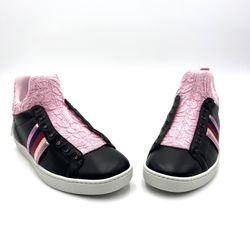 New Gucci Black Leather Pink Lace Neoprane Hi Top Sneakers$600Yonkers, NY