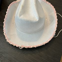 White cowboy hat with pink sequin trim and beaded brim$10Holbrook, NY