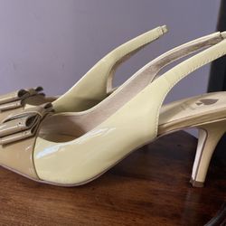 Kate Spade patent leather cream and tan open toe sling backs. Size 7.5.$55Yonkers, NY