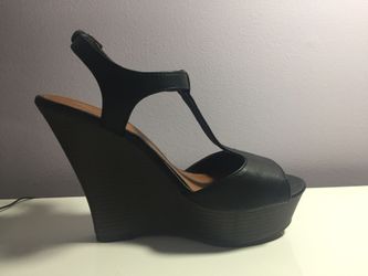 Candies T strap Camacoa Black Wedges sz 9$10Commack, NY