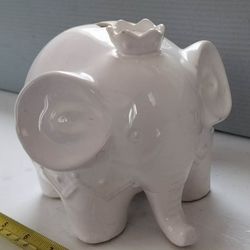 White porcelain crowned elephant piggy bank. (No bottom plug)