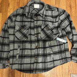Men's Grey and black plaid flannel jacket size large $15Holbrook, NY