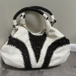 Cole Haan Alyssa Ivory Straw Handbag With Brown Beading $119New City, NY
