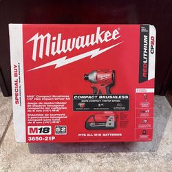 Milwaukee 3650-21P 18-V Li-Ion Compact Brushless Cordless 1/4" Impact Driver Kit$130West Islip, NY