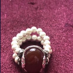 Expandable pearl ring with a burgundy, Stone$10Valhalla, NY