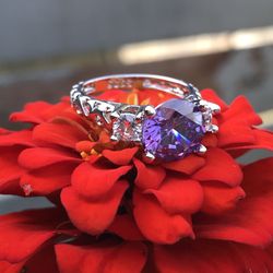 Purple Flower Sterling Ring Size-7$24Huntington Station, NY