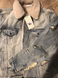 MNML destroyed denim Sherpa trucker jacket$75Bay Shore, NY