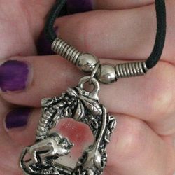 Mirror Silver Tone & Black Rope Material Necklace Slow Loris & Lemur "Monkey"$8Hicksville, NY