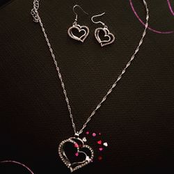 Double Heart Sterling Silver Short Necklace With Matching Fishhook Double Heart Earring Perfect For Mothers Day$25The Bronx, NY