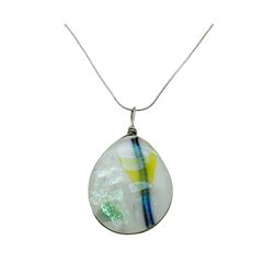 925 Sterling Dichroic Art Glass Teardrop Pendant Necklace, Artisan Silver Jewelry, 18 inch Snake Chain, Retro Vintage Jewelry for Woman or Teen$34Ossining, NY