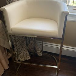 Pair Of White Faux Leather Adjustable Height Bar Stools With Chrome Base And Foot Rest$120New Haven, CT