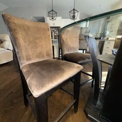 Tall glass-top dining room set w/ 4 suede chairs.$400Yorktown Heights, NY