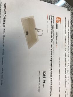 Duel mount 33 x 22 x 10 single Hole kitchen sink$50Ronkonkoma, NY