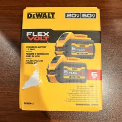 FLEXVOLT 20V/60V MAX Lithium-Ion 6.0Ah Battery Pack ( 2 Batteries ) $280Hauppauge, NY