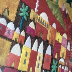 Lydie Egosi Judaica Folk Art large stitched tapestry gold framed autographed serigraph print $169Huntingtn Sta, NY