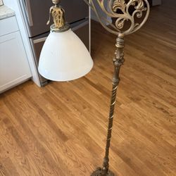 antique Victorian gilt metal bridge floor lamp, featuring an ornate, white milk ‘56 tall$90Bridgeport, CT