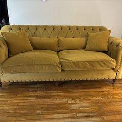 Yellow/Gold Velvet Chesterfield Loveseat – Tufted Rolled Arm Sofa$400Waterbury, CT