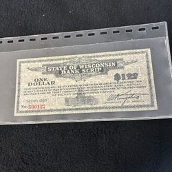 State Of Wisconsin Bank Scrip $1.00$350Yalesville, CT