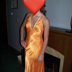 Orange satin halter dress with rhinestone straps on back$20Naugatuck, CT