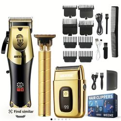 3-Piece Professional Blonde Hair Clipper & Trimmer Kit for Men - USB-Rechargeable Barber Set Featuring LCD Display, Adjustable Blade Hair Clippers, an$30Christiana, DE