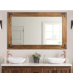 YOSHOOT Rustic Wooden Framed Wall Mirror, Natural Wood Bathroom Vanity Mirror for Farmhouse Decor, Vertical or Horizontal Hanging, 60" x 30", Brown$170Camden, NJ