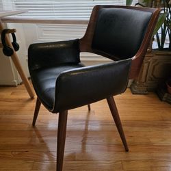 Vintage Mid-Century Modern Wood & Black Vinyl Armchair$95Springfield, PA