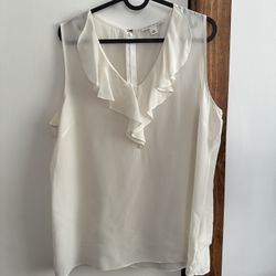 Banana Republic sleeveless ruffle blouse 100% Silk ivory Sz 14 length 25” armpit to armpit 21*2”$28New Castle, DE
