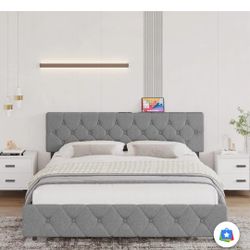 GARVEE Queen Size Bed Frame with USB Ports,Upholstered Platform with Adjustable Headboard, Strong Frame and Wooden Slats Support, Linen Fabric$100Camden, NJ