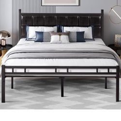 Amolife King Size Metal Bed Frame With Faux Leather Upholstered Headboard, Black$90Camden, NJ