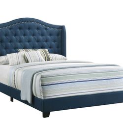 NEW MODERN BLUE FABRIC QUEEN OR KING SIZE BED BUTTON TUFTED