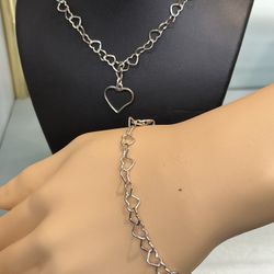 Sterling Silver Pen Heart Shape Link Necklace &Bracelet Set$100Somerdale, NJ