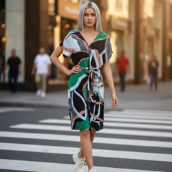 Nine West Green and Black Midi Dress Size L$22Newark, DE