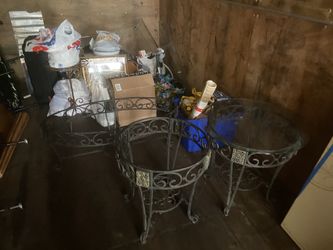 Glass Coffee Table with Matching End Tables – Elegant Carved Wood & Iron Design$300Philadelphia, PA