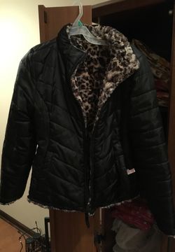 Reversible black / leopard fleece winter coat$20Camden, NJ
