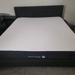 : Queen Upholstered Bed + Box Spring + Lightly Used Casper Original Hybrid Mattress$200King Of Prussia, PA