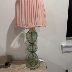 Green Glass Table Lamp with Pink Pleated Shade$60Philadelphia, PA
