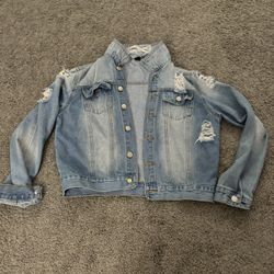 WOMENS JEAN JACKET W/ DISTRESSED LOOK/Tears LIKE NEW SIZE M SHEIN $10 obo SEE PICS (video if you want)$10Kirklyn, PA