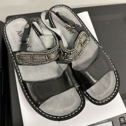 Alegria By PG Lite Women’s Black Sandals Strappy Leather Beaded Pattern Sz 38$22New Castle, DE