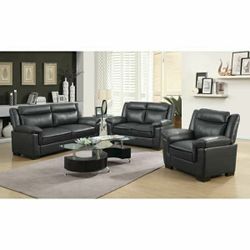 NEW Arabella Modern Dark Grey Leather Sofa & Love Seat & Chair 3 Pc Living Room Set