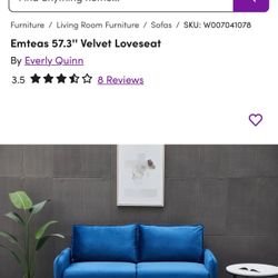 Brand New Velvet Blue Loveseat Couch$175Philadelphia, PA