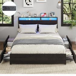 Kiivakii Queen Size Bed Frame with Headboard, LED Platform Bed with 4 Storage Drawers, Built in Charging Station, Noise-Free, Metal Support Base, No B$135Camden, NJ