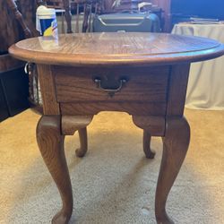 Broyhill Furniture solid oak country-style oval accent end table with a drawer. $50Newark, DE
