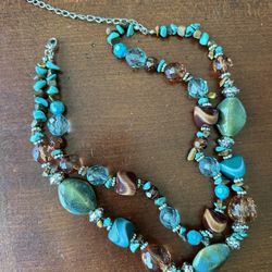 Beautiful Eye-catching Necklace Turquoise and Brown beads double-strand 16-20”$20New Castle, DE
