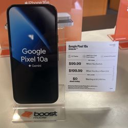 Google pixel 10a $230 when you switch to boost Mobile$230Orlando, FL