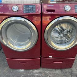 Samsung washer and dryer set, red, front-loading, with Samsung pedestals.$750Orlando, FL