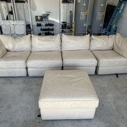 Natuzzi Genuine Leather L-Shaped Sectional + Ottoman — Cream/Blonde$90Orlando, FL